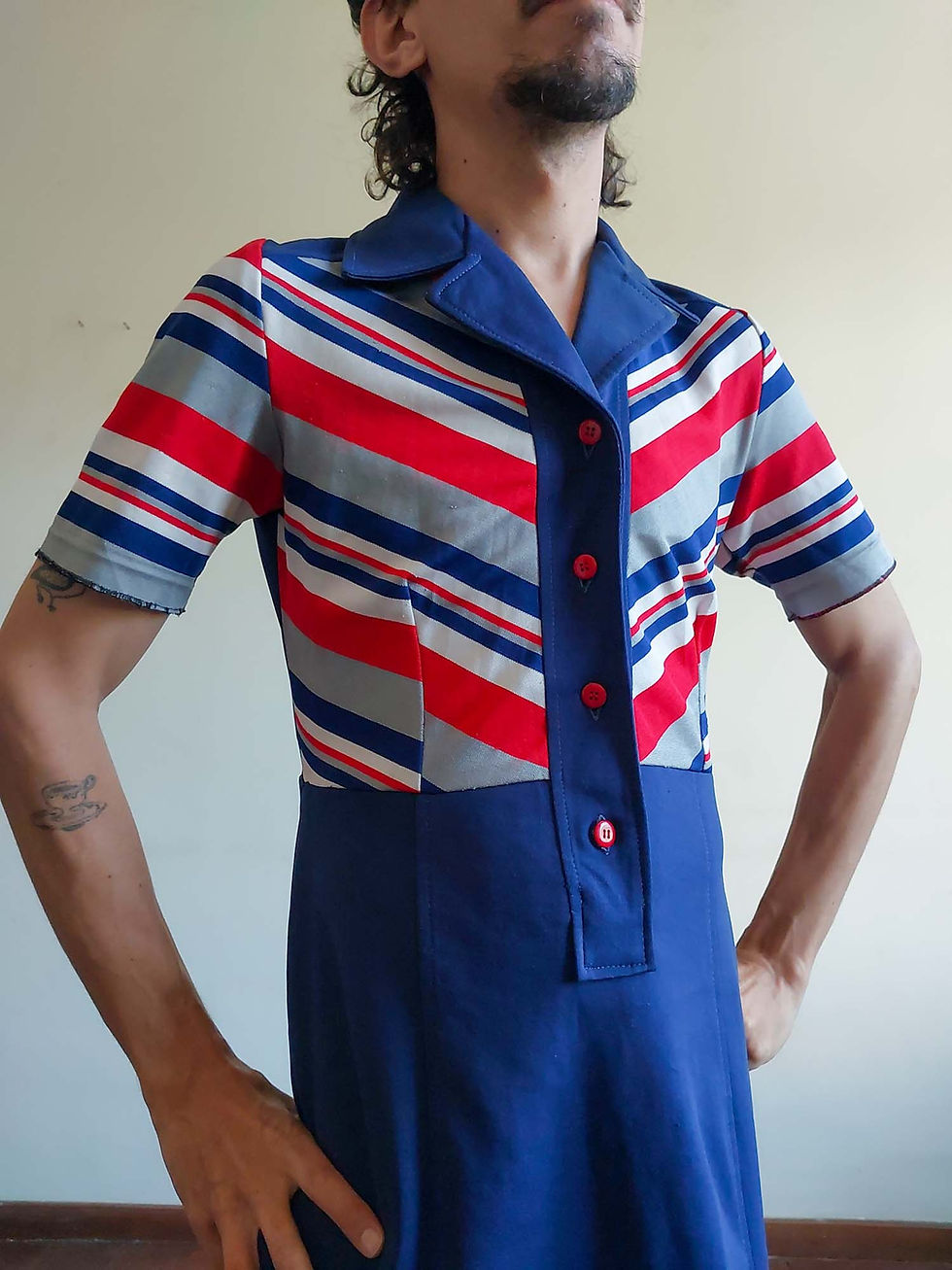 Vestido Flores e Geometrias anos 1970 (tam G)